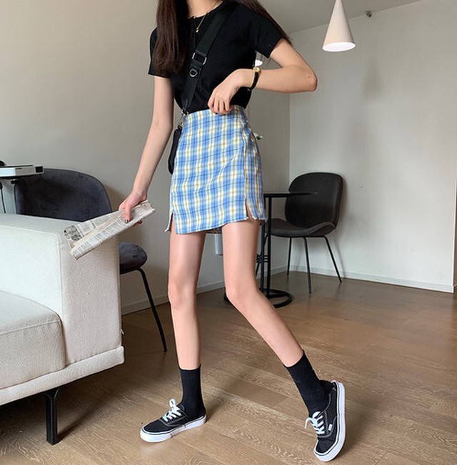 韓国ファッションの着こなし方の大きなポイントは、スキニーパンツやタイトスカートといった下半身に沿ったボトムスを合わせることです。