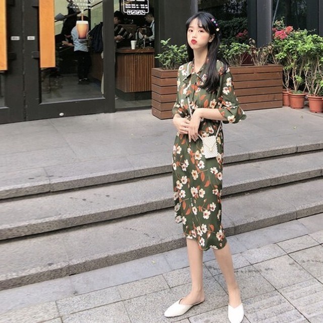 ガーリーテイストな韓国ファッションは、花柄ワンピースだけでも、簡単に完成することができます。