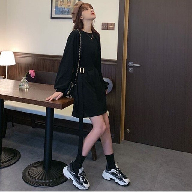 カジュアルなスタイリングのときはもちろん、ガーリーやフェミニンなスタイルにもスニーカーを合わせて甘辛ミックスコーデを楽しむのが韓国流なのです。
