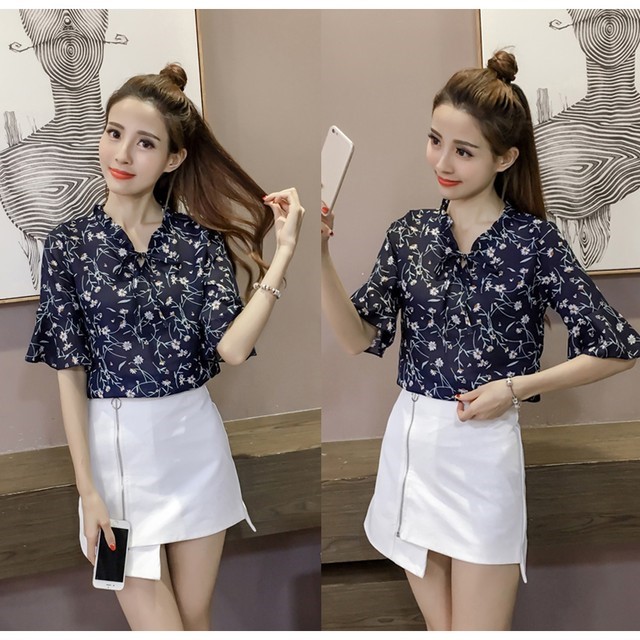ふんわりとした可憐な花柄ブラウスに台形ミニスカートを合わせれば、モテ度アップ間違いなしの清楚系コーデに仕上がりますよ。