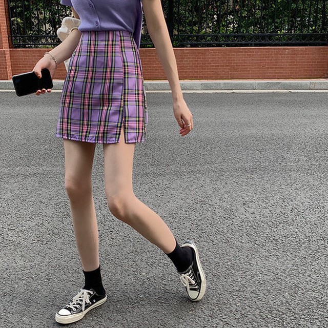 チェック柄のミニスカートも、安定した人気を誇るアイテムです。