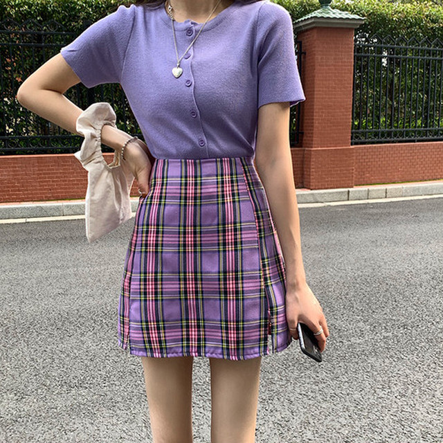 韓国女子に定番人気のチェック柄ミニ丈スカートです。