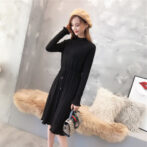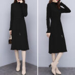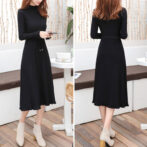 【黒】 ワンピース レディース 長袖 膝下 膝丈 秋 冬 Aライン ハイウエスト フレア セミフォーマル