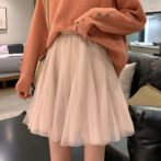 【アプリコット・フリーサイズ】 レディース スカート 膝上 レース メッシュ 春 夏 ハイウエスト フレア チュールスカート フェアリー