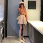 細身のトップスと合わせることで、足の短さや下半身太りの悩みの体型カバーに役立ちます。