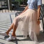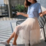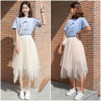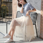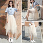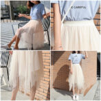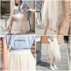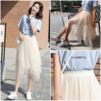 大人気! レディース メッシュ ガーゼ ハイウエスト スカート!