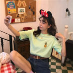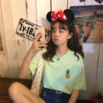 【グリーン/フリーサイズ】Tシャツ 五分袖Tシャツ レディース カジュアル シンプル 可愛い パイナップル 刺繍 果物柄 体型カバー プルオーバー お洒落