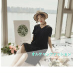 素材は ポリエステル でさらっとした着心地の vネック 膝丈ワンピース になります。