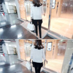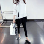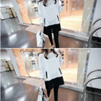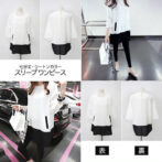 【ホワイト/フリーサイズ】ワンピース ステッチ ラウンドネック 七分丈 スリーブドレス Aラインスカート ツートン シャツワンピ ゆるコーデ 春秋冬 韓国ファッション オルチャンファッション レディース