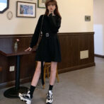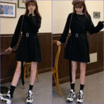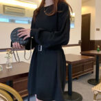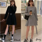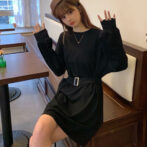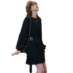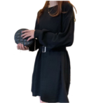 上品な開きのラウンドネック、袖口はふわりとバルーン袖、ベルトでメリハリを出して、裾の広がりは Aライン、着心地が良くてラクなのにきちんと感があるから着ていく場所が広がります。レギンス や ジーンズ を合わせて レイヤード コーデもバッチリです!