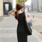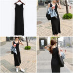 【M ブラック 黒】 レディース ワンピース ロング丈 タンクトップ ノースリーブ Tシャツワンピース ロング スカート 体型カバー 春夏 韓国ファッション オルチャン マタニティウエア にも