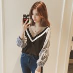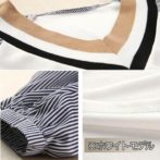 ストライプ Vネック 長袖 トップス レディース コントラストカラー【ホワイト】