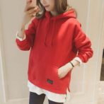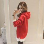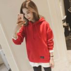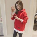 パーカー【レッド】 レディース プルオーバー ロング丈 長袖 厚手 ゆったり