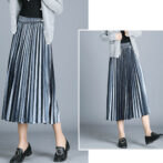 プリーツスカート レディース 【ブルー・フリーサイズ】 韓国ファッション スカート マキシ丈 ロング丈 オルチャンファッション