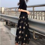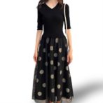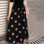 春 夏 秋 フェイクツーピース 水玉 フェミニン ブラック ワンピース